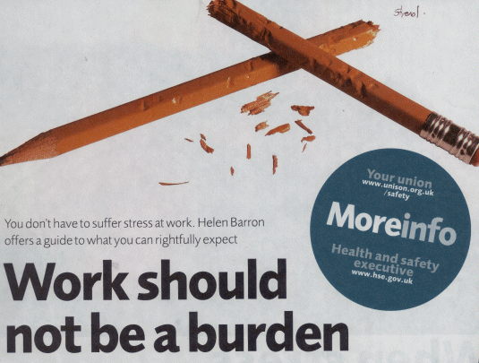 Stressed Public Sector Workers Most Likely To Go Sick (6/7/04) Public sector workers have one of the highest rates of sickness absence according to a report released by the Chartered Institute of Personnel and Development. Although minor illnesses such as colds and flu remain the most important cause of sickness absence for all UK workers, the report shows the effect of stress is growing, with 52 per cent of employers reporting an increase. Heavy workloads, pressure to meet targets and management styles were the key reasons for stress-related illnesses. Results from the survey show that workers in the public sector took 10.7 days off work sick last year compared with 7.8 days in private firms. The average worker took 9.1 days a year as sick leave whereas people working in the health service and central government took 11.6 days sick a year. June Chandler, national officer for UNISON, says it is important to look behind the figures and try to discover the underlining causes. "There is sometimes violence against public sector workers and working with the public brings cross infection" she explains. "Public Sector Workers don’t take sick leave lightly. I don’t think it is fair to compare the public and private sectors. They are different". |