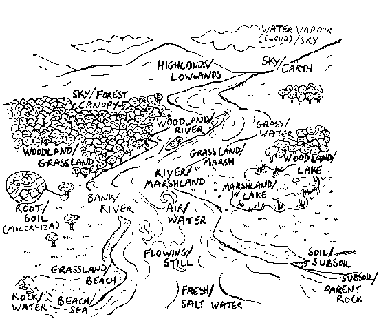 The �Edge� or Ecotone is the place where two ecologies meet, such as the woodland edge or the seashore. Such an environment tends to be more synergistic, supporting biological activity from either side of this �boundary� zone as well as species particular to it�s own conditions, thus making it a highly productive region...