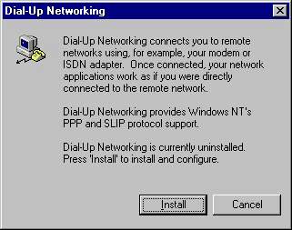 2. Once you have this screen you should double-click the Dial-up Networking icon - if you have not installed it before you will be presented with the window shown below...