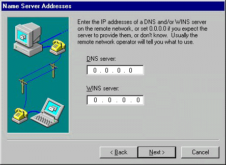 8. In this screen you should enter the DNS server address of 212.85.249.130 in the DNS Server box then click Next to bring up the next stage of the wizard as shown below.