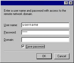 14. It is VERY important to note that there should be nothing in the Domain: field, if there is anything entered in this field the connect attempt will fail. After clicking OK the modem or ISDN Terminal Adapter should dial and you should connect successfully to us.