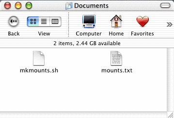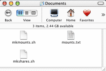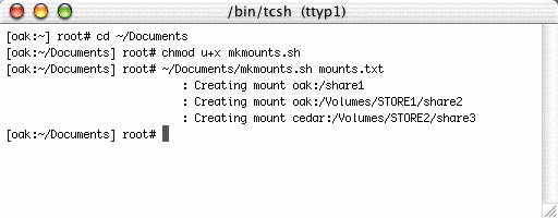| Copy the script "mkmounts.sh" into roots' home directory (/private/var/root/Documents). | |