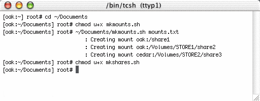 This script runs through the list of mounts specified in netinfo. The script creates a SharePoint whenever it finds a mount definition for the machine that the script is running on. It cannot create SharePoints for other machine mounts, since SharePoints are defined in a machines local NetInfo database. |