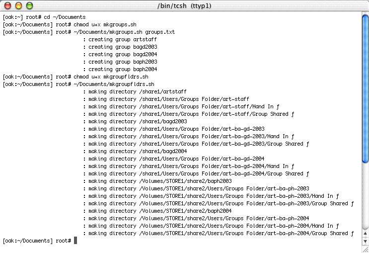 Execute the "mkgroupfldrs.sh" script by typing the following: