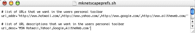 The script also sets up the users personal toolbar with some predefined URLs. This can be customised by altering the script. |