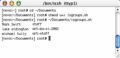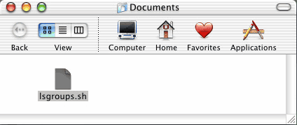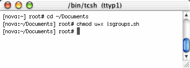 | Copy the script "lsgroups.sh" into roots' home directory (/private/var/root/Documents). | ![]() |