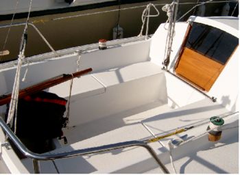 | They are truly substantial. In deed all the deck fittings are improved in themselves &/or their positioning. A good example of this is the cockpit. The 215 has a mainsheet traveler fitted across the cockpit just abaft the companionway; so the winches on the coachroof have been moved to the cockpit coamings, nearer the helm, & can no longer foul the mainsheet fall. | |