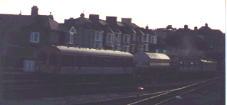 Passenger carriages contain health physics workers from Devonport Dockyard and MoD police. Two flasks beneath grey 'modesty' cover - each flask contains a quarter of a core. Diesel engine from ScotRail - so likely to have come down from Rosyth in Scotland.