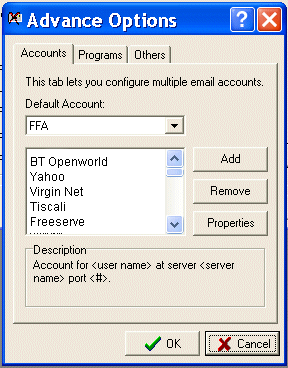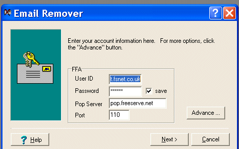 PLEASE NOTE: This software can only operate if you have POP access to your server. If you are a HOTMAIL or AOL user, you will not be able to these facilities. Both Hotmail and AOL do not permit you to access their mail servers and so you are stuck with receiving junk mail despite numerous filters in place. If you are surfing the internet on a regular basis and in particular sites such as dating sites, you are well advised to get yourself an account with a company who gives you POP access. |